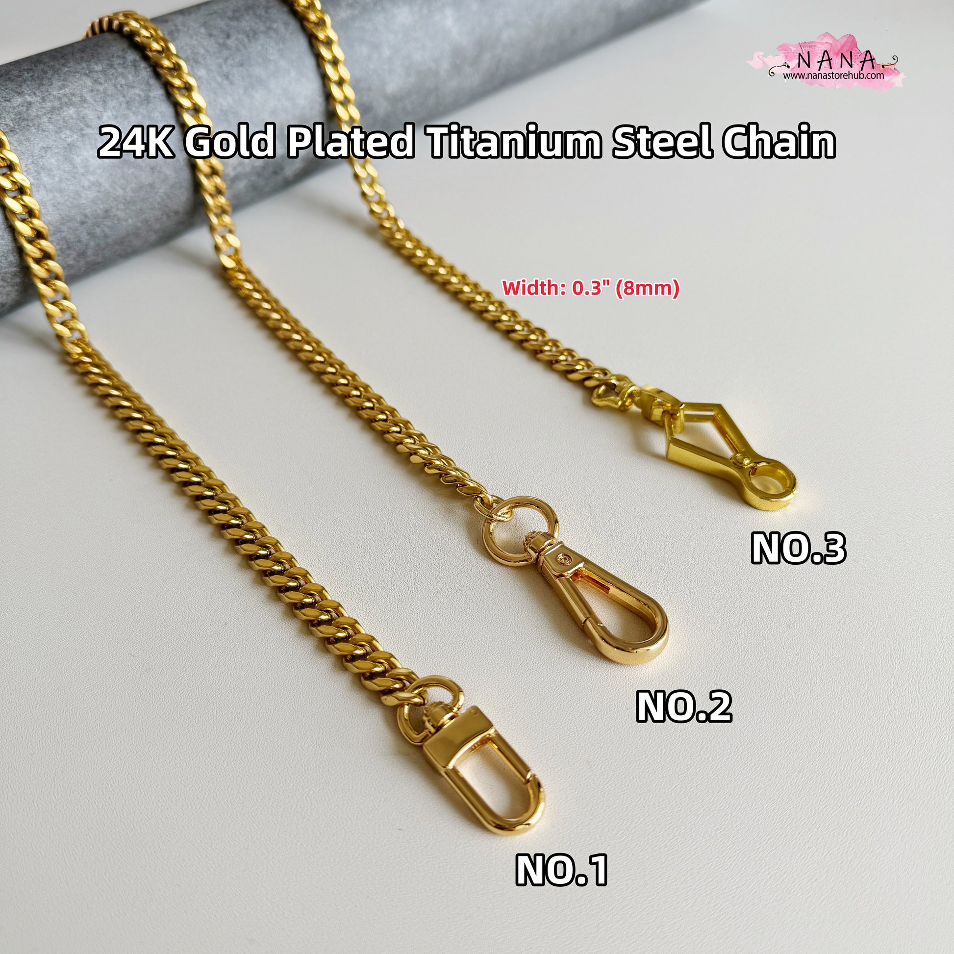 9mm 24K Gold Plated Titanium Steel High Quality Purse Chain, Metal Shoulder Handbag Strap,Bag Strap, Bag Accessories, Detachable,JD-573